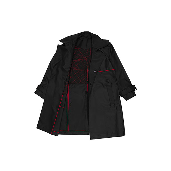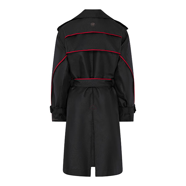 Double-breasted trench coat in luxury Cordura fabric with pockets and back vent for functionality – ideal for transitional and all-season wear. Rear piping echoes the ‘Coda Tronca’ rear lights on Junior. Interior lining features a custom Milan city map print, a nod to the fashion capital of Italy and the birthplace of Alfa Romeo. Features Alfa Romeo script logo on left cuff.